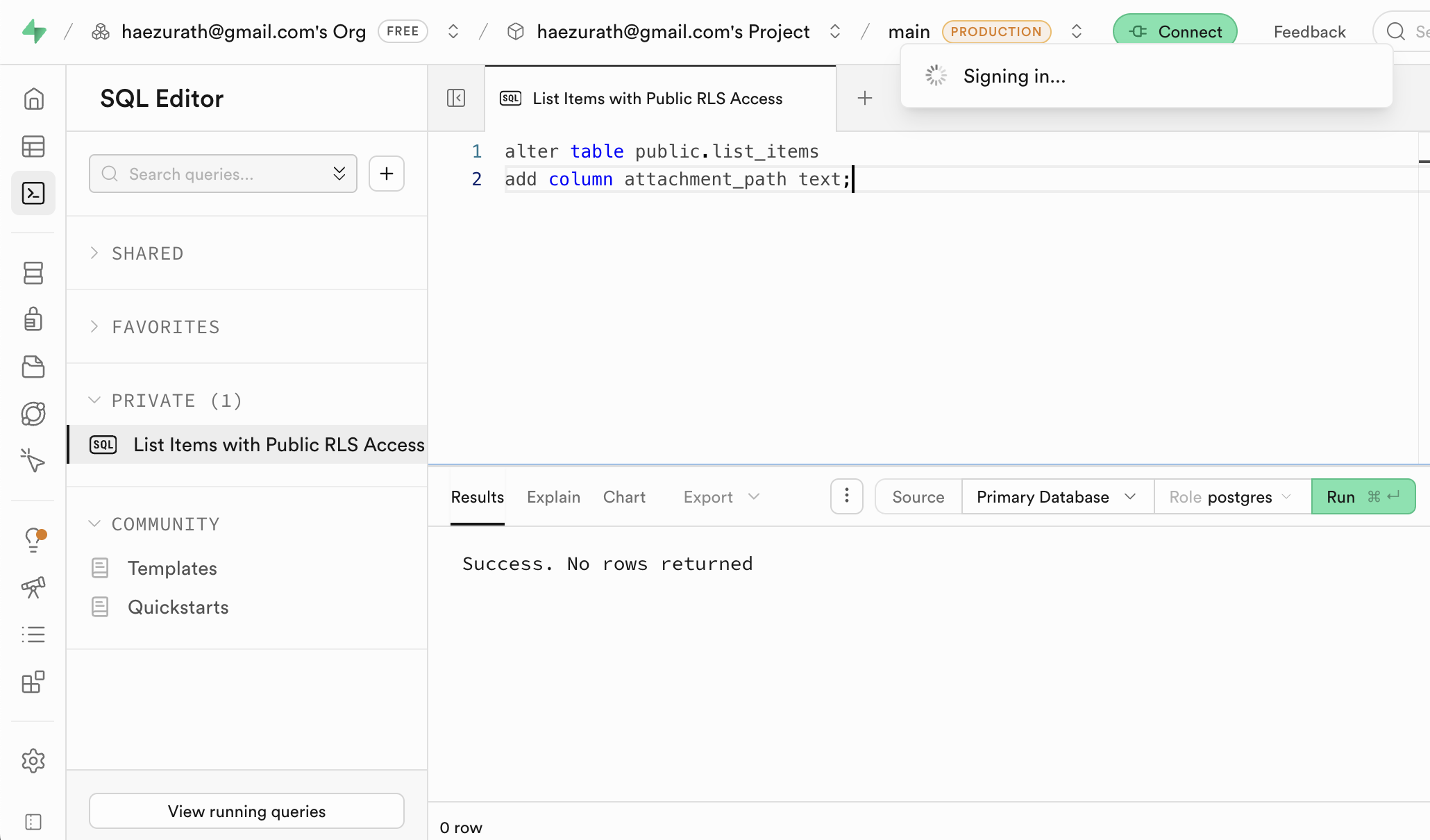 > I need to add a column to my list table in Supabase to store the
